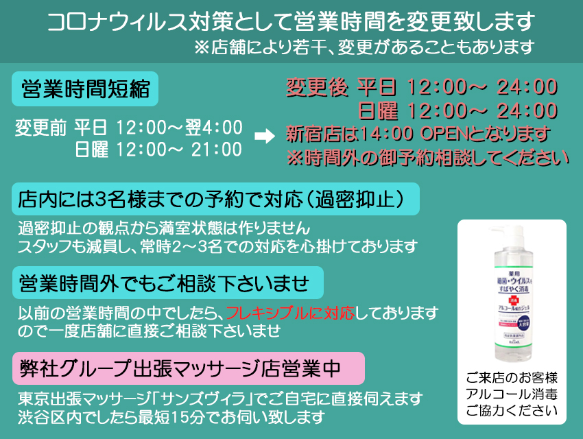 コロナ対策2 | 渋谷でリラクゼーションサロンをお探しならARONA SPA(アロナ・スパ)へ渋谷でリラクゼーションサロンをお探しならARONA SPA(アロナ・スパ)へ