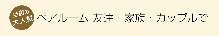 お友達同士やカップルでのご利用にピッタリなペア個室もあります。記念日等に是非ご一緒にいかがでしょうか?