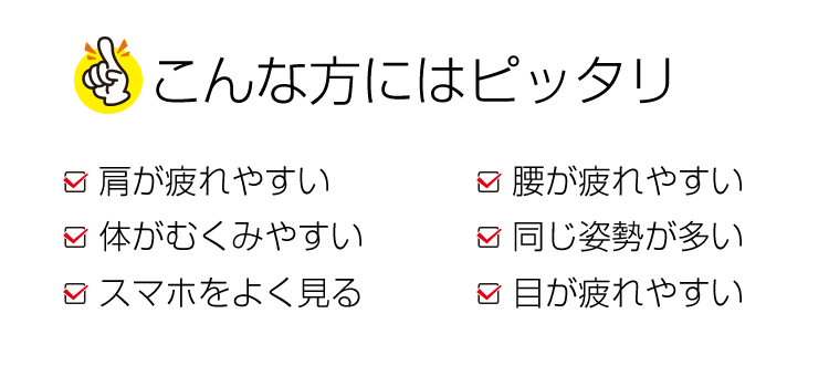 日常で固まった筋肉を心地よく伸ばすことで、血行促進・疲労回復・コリ解消などにつながり柔軟性を高めよりアクティブに動くことができます。